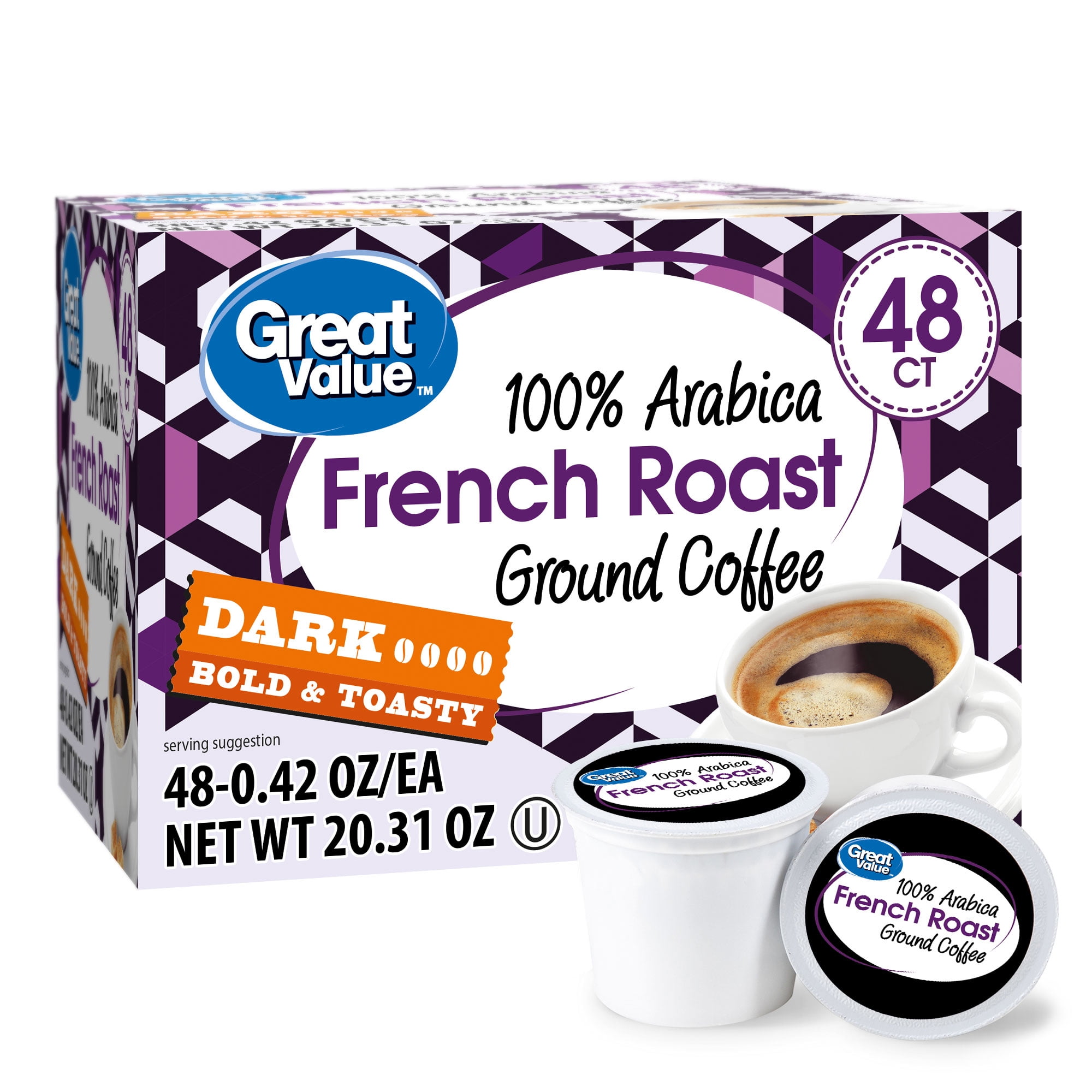 Great Value French Roast Single Serve Coffee Pods Dark Roast 48 Count Walmart Com